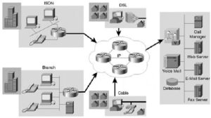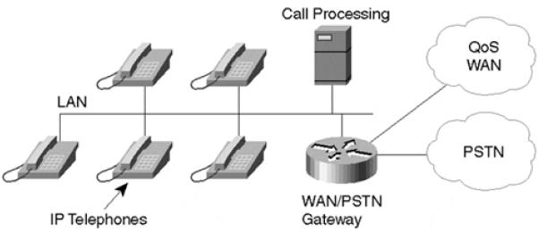 La maggior parte delle azienda ha anche una rete per i dati; una piccola modifica ad essa può consentire la sostituzione delle linee vocali dedicate e il trasferimento del traffico vocale sulla rete dati. In questo modo la nuova architettura di rete, voce/dati, avrà un aspetto simile a quella mostrata nella figura alla pagina successiva.
