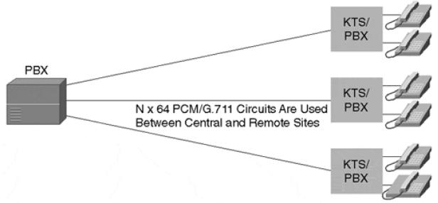 Molte reti aziendali, solitamente, si trovano nella situazione di avere un unico centralino con più sedi remote. Le connessioni tra la sede centrale e le sedi remote avvengono spesso tramite linee dedicate, realizzate per il trasporto della voce sono connessioni permanenti a 64 kbits in grado di trasportare sia la voce che i dati.