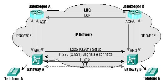 - Direct Call Signalling: il Gatekeeper non sarà attraversato dai messaggi H.225.0, che sono scambiati direttamente tra gli endpoints comunicanti.
