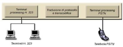 Il Gateway termina i protocolli di comunicazione su entrambe le reti: esso viene quindi visto come un terminale H.323 sulla LAN e come un terminale PSTN sulla rete commutata.